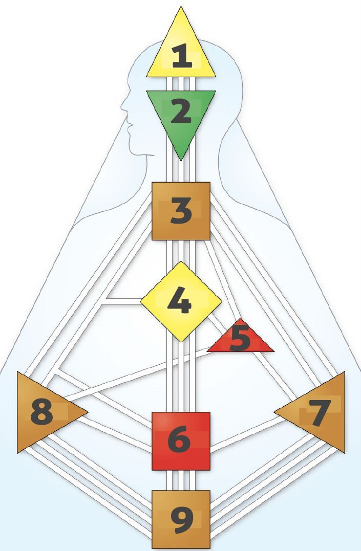 A Test Térképeden található Energia Központok, életed különböző témáihoz kapcsolódnak.